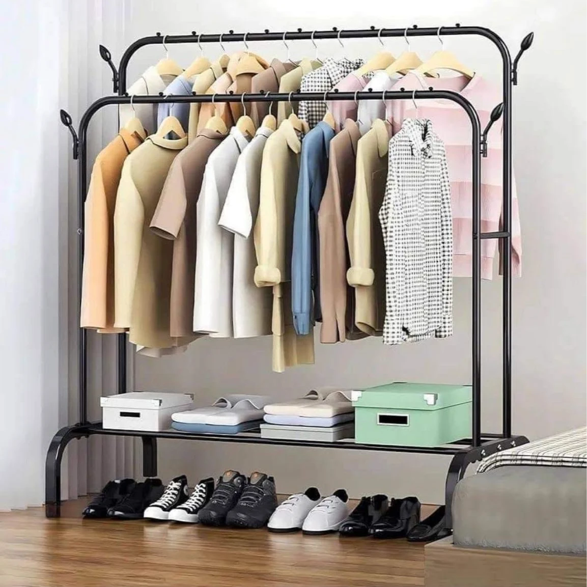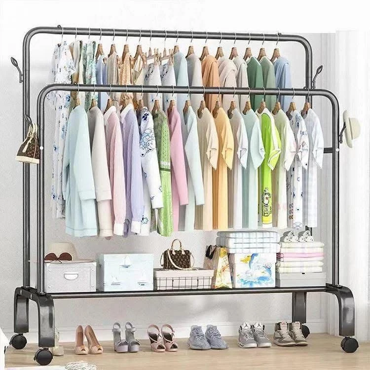 علاق ملابس مزدوج مع رف تخزين سفلي